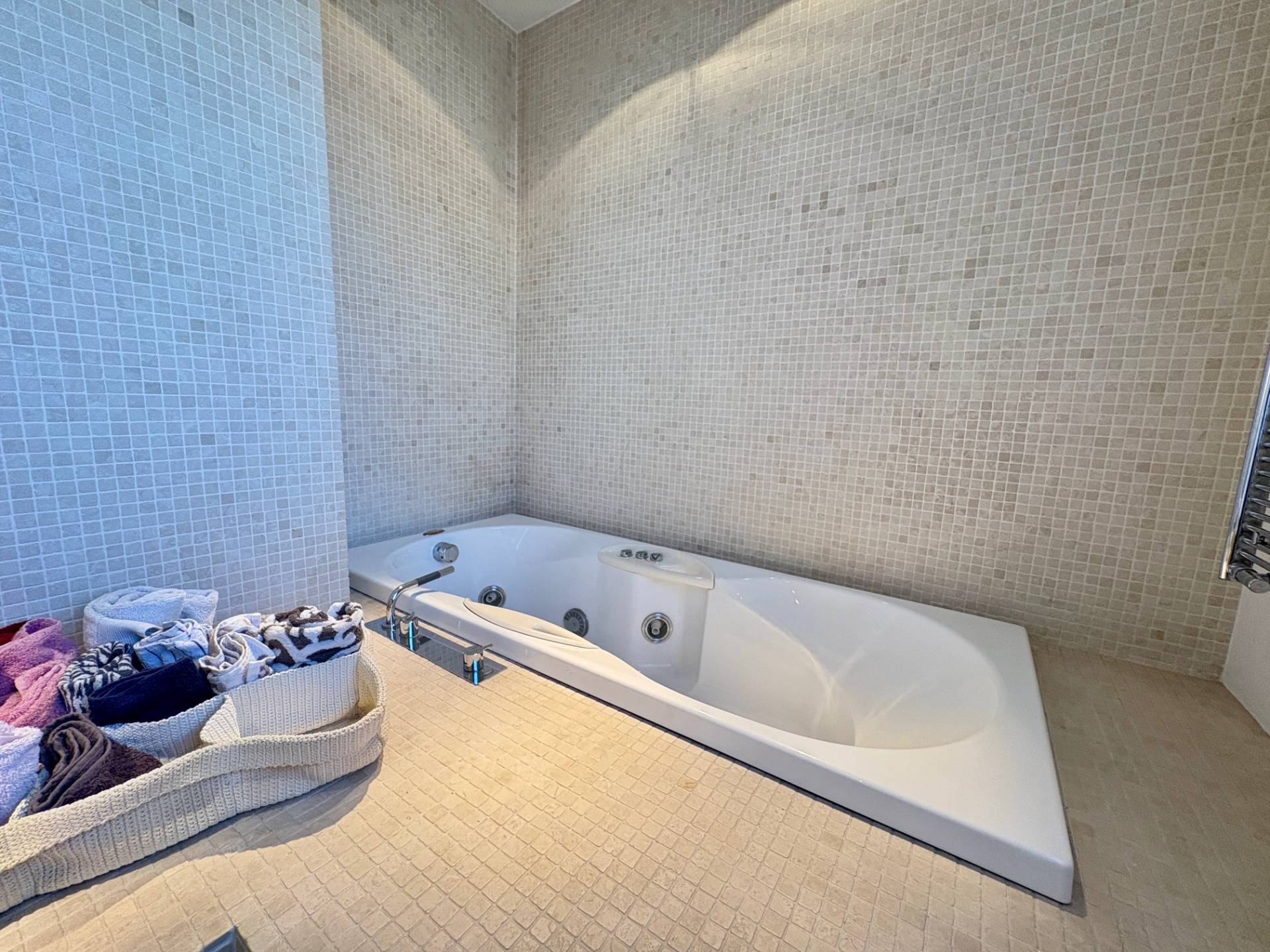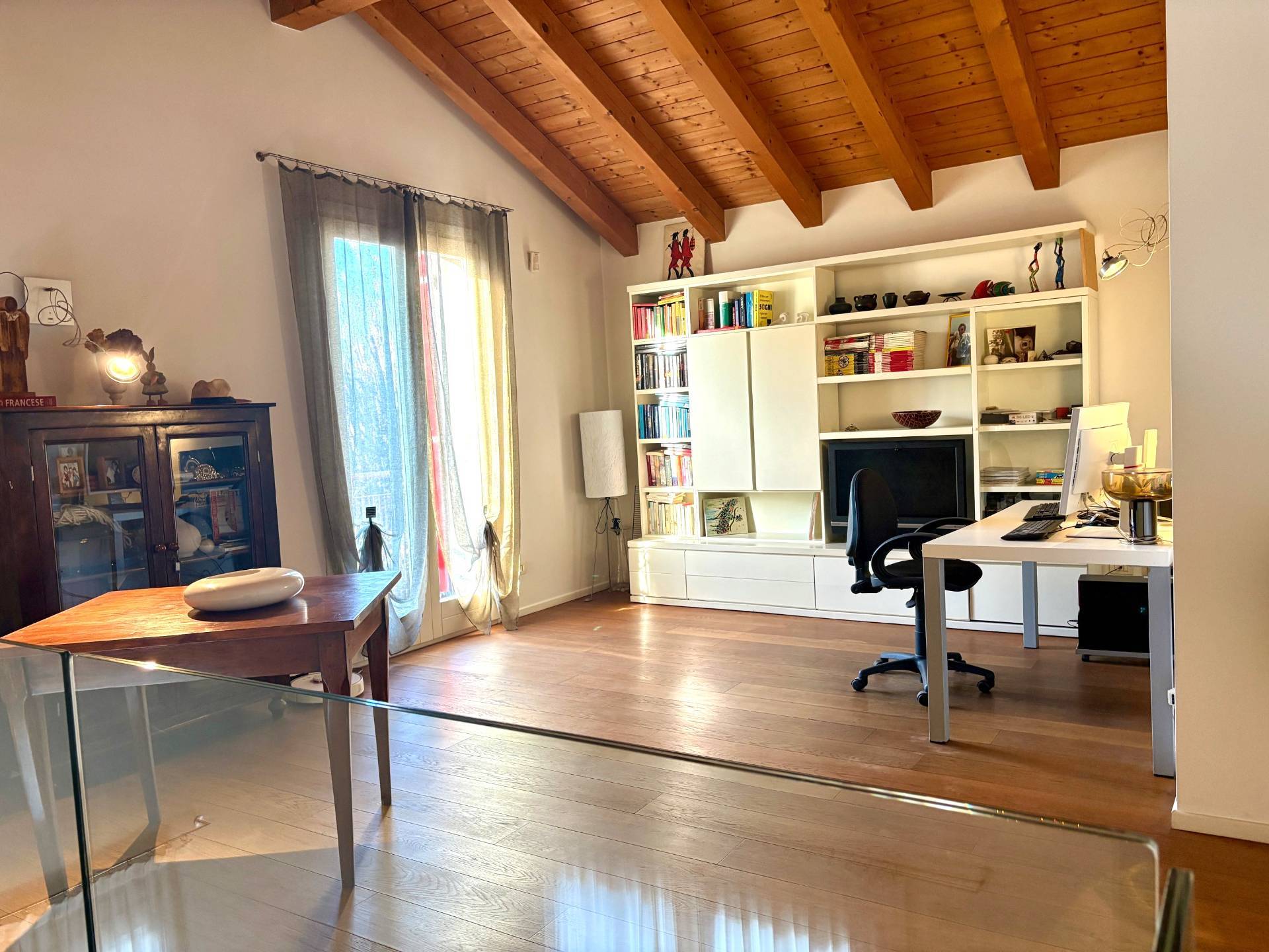 Al piano primo troviamo la camera padronale dalle ampie dimensioni attualmente affacciata sul soggiorno sottostante, una seconda camera da letto, una stanza da bagno con vasca idromassaggio sopraelevata ed una pratica Cabina Armadio.