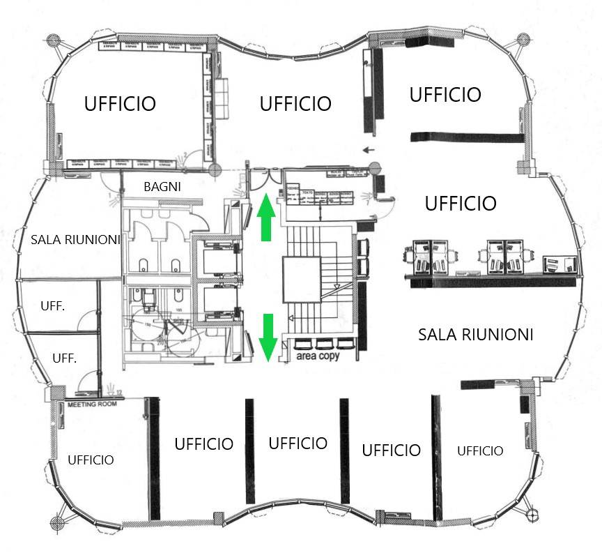 L’immobile si distingue per la sua organizzazione funzionale e moderna: un ampio open space sapientemente suddiviso in diverse aree operative, sale riunioni, locale archivio e servizi. Gli ambienti, curati nei dettagli, sono arredati con postazioni di lavoro ampie e moderne, oltre a pratiche armadiature su misura che ottimizzano gli spazi.